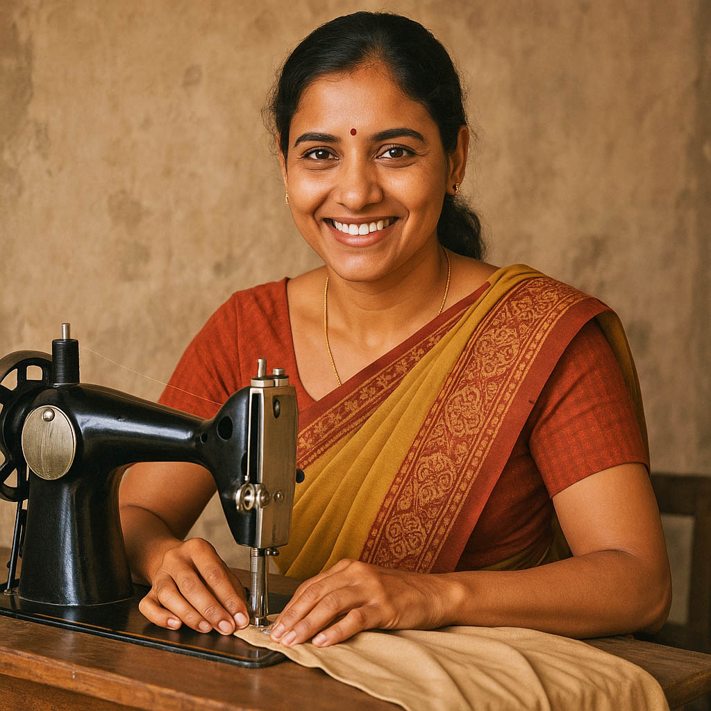 Today, she runs her own home-based tailoring business and earns a steady monthly income, supporting her children’s education.